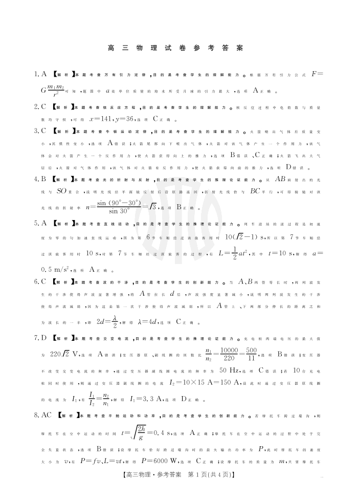 河南省金太阳2024-2025学年高三年级上学期开学联考+物理答案