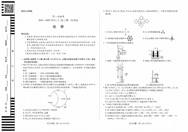 天一大联考2024-2025学年(上)高三第一次考试+化学