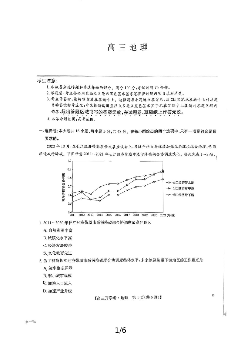 河南省开封五县考2024-2025学年高三上学期开学联考+地理
