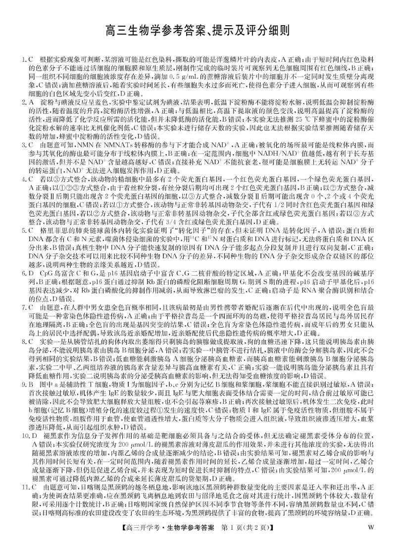 河南省开封五县考2024-2025学年高三上学期开学联考+生物答案