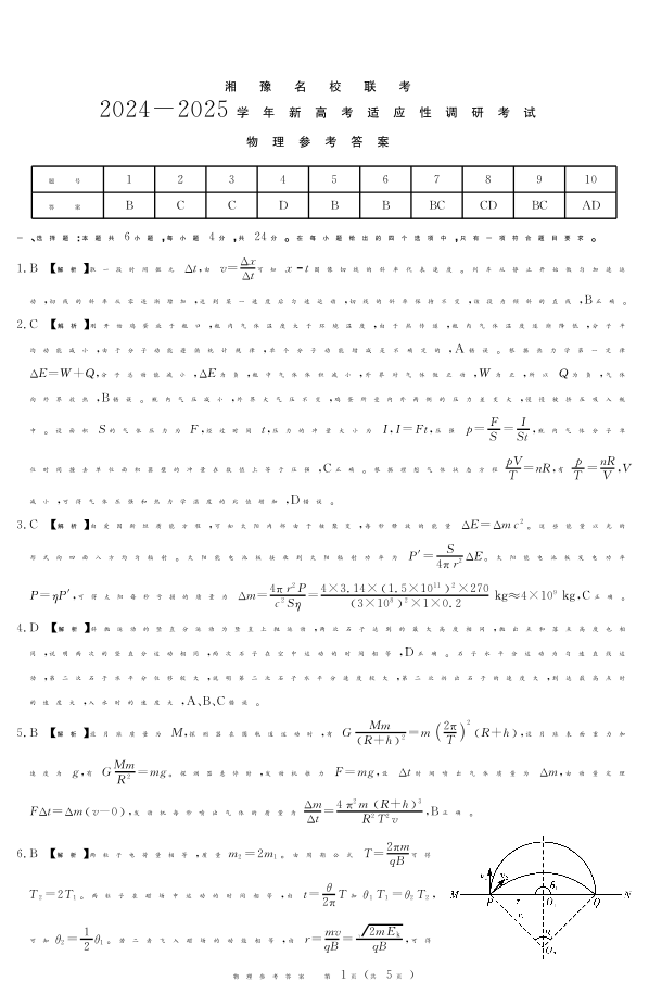 湘豫名校联考2024-2025学年新高考适应性调研考试+物理答案