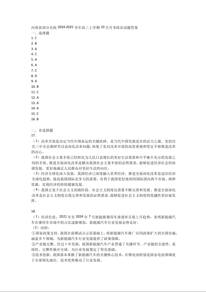 青桐鸣2025届高三10月大联考+政治答案