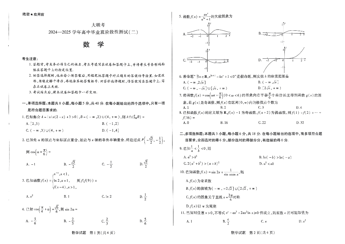 河南省天一大联考2024-2025学年高三上学期阶段性检测(二)数学