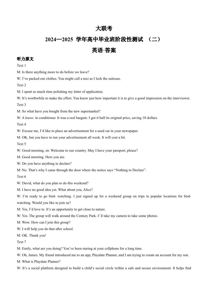 河南省天一大联考2024-2025学年高三上学期阶段性检测(二)英语答案