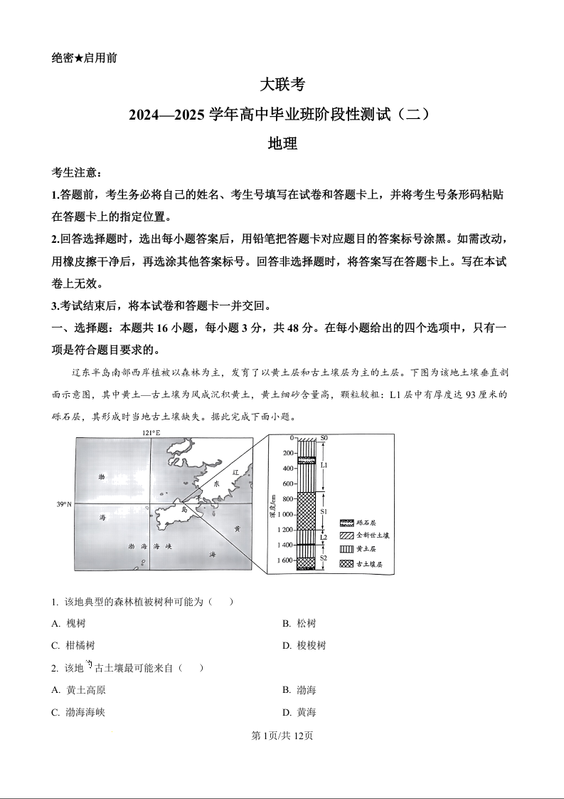 河南省天一大联考2024-2025学年高三上学期阶段性检测(二)地理答案