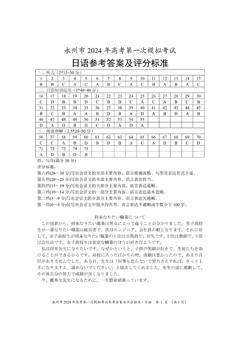 【答案】2024届湖南省永州市高三上学期第一次模拟考试日语