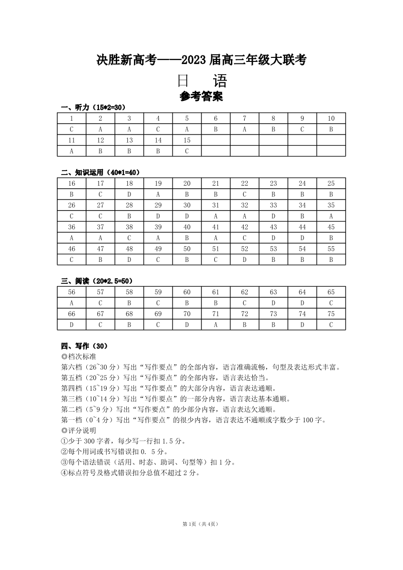 2023届决胜高考日语试卷参考答案及听力原文