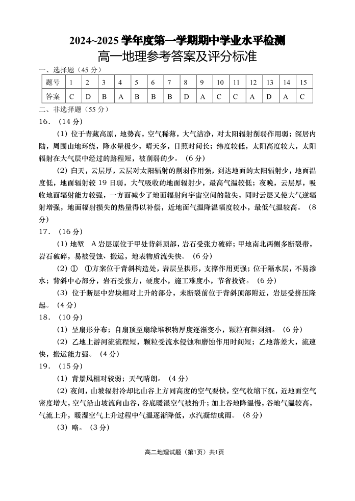 山东省青岛市区域2024.11高一年级期中检测地理答案