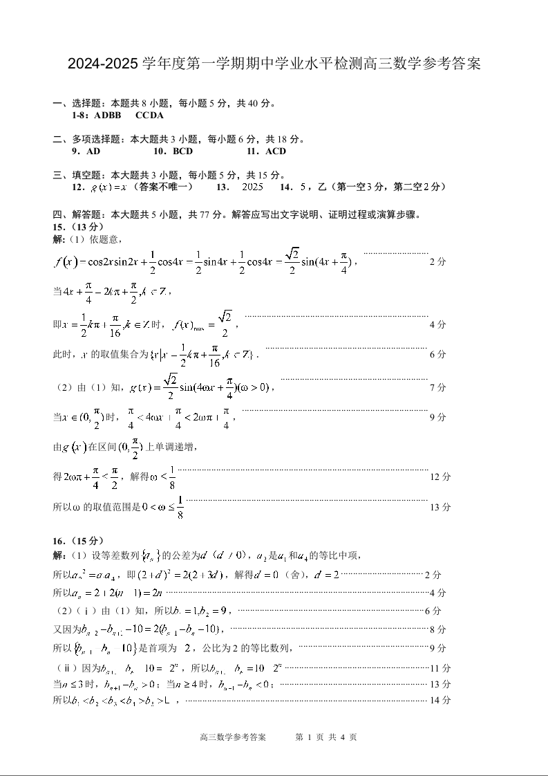 山东省青岛市区域2024.11高三年级期中检测试题数学答案