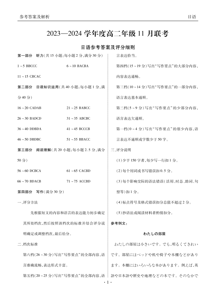 【答案】2023-2024学年度高二年级11月联考日语