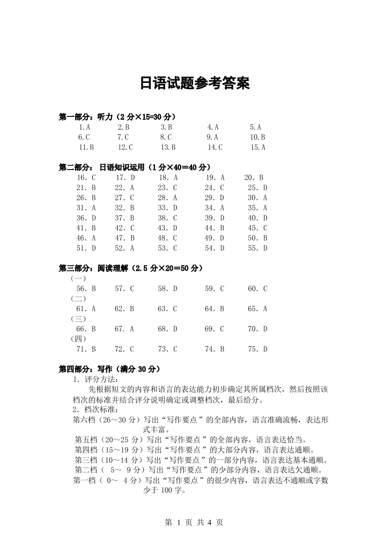 2023-2024学年度第一学期阶段性检测高二日语试卷答案