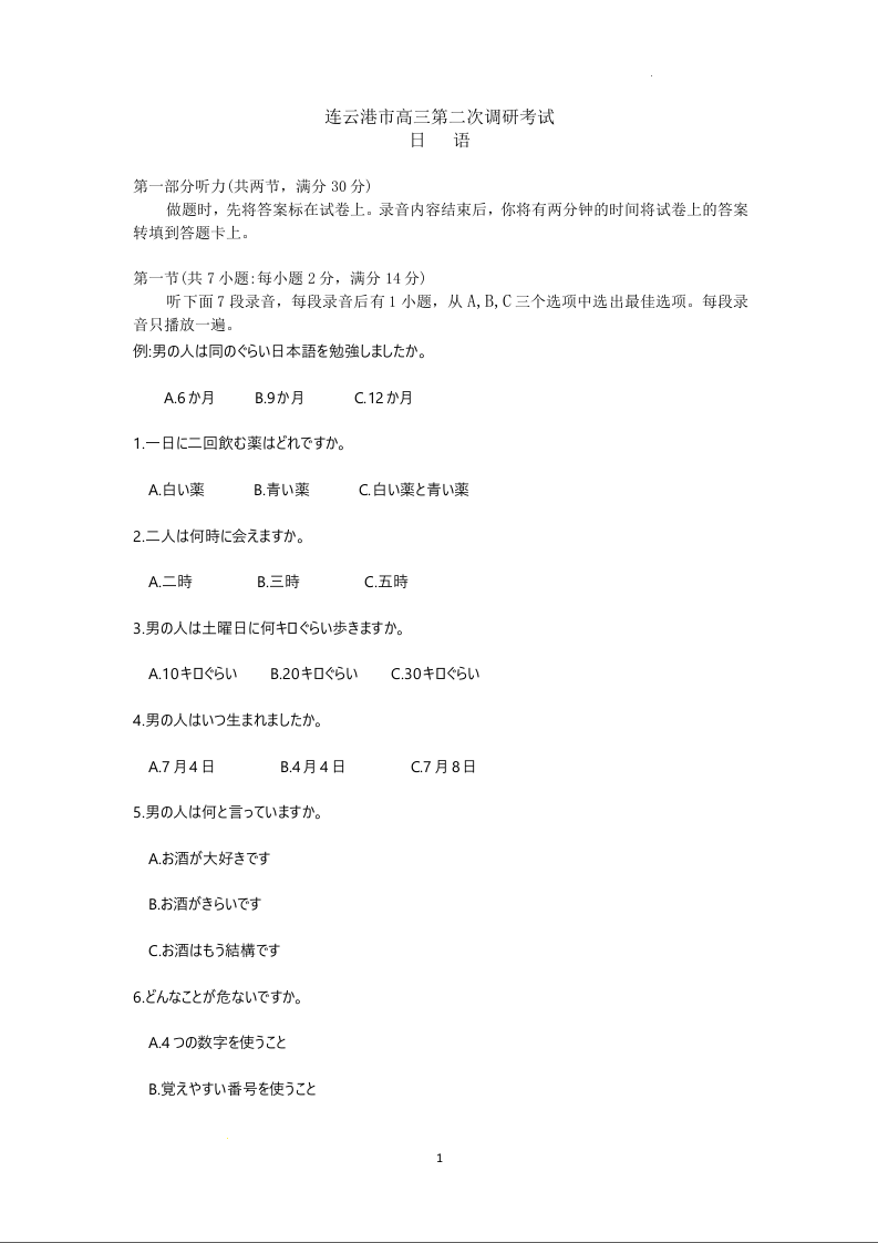 连云港市高三第二次调研考试