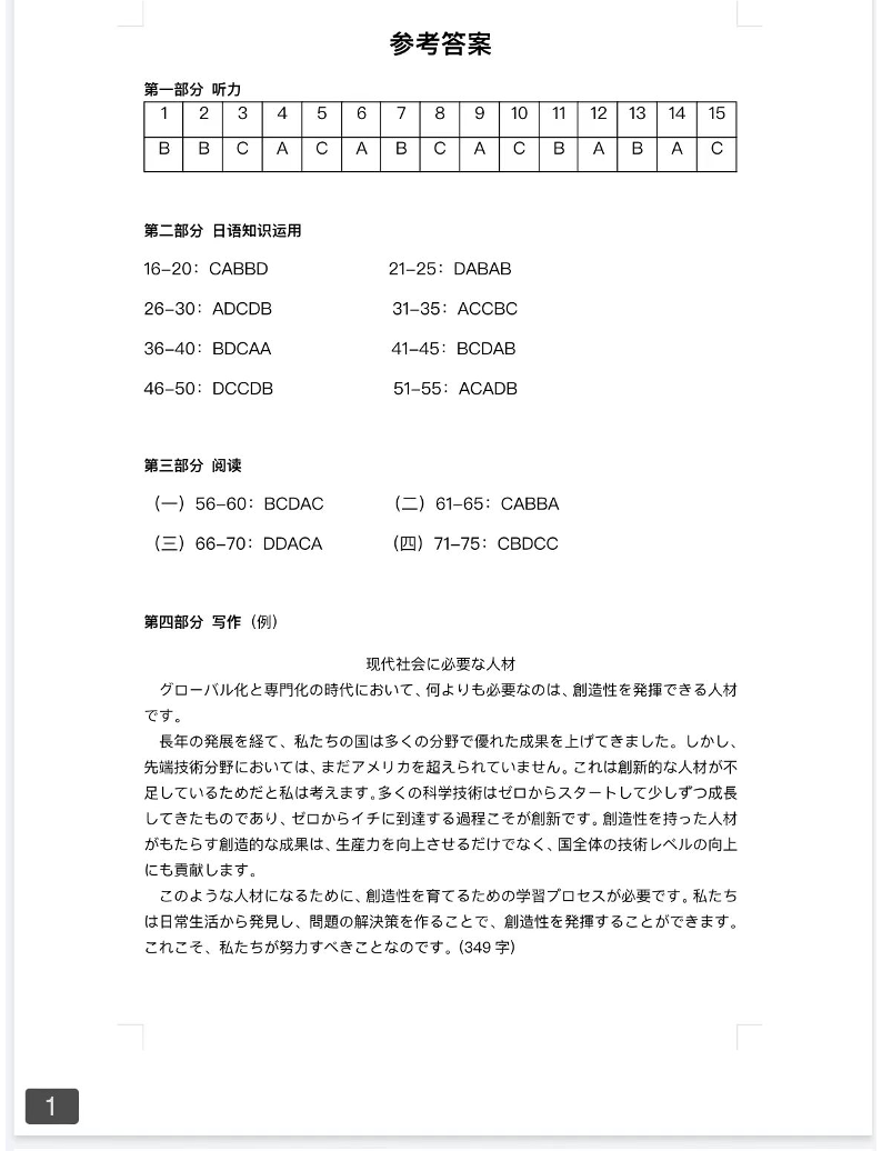 安徽县中联盟2023-2024学年高三12月联考日语【答案】