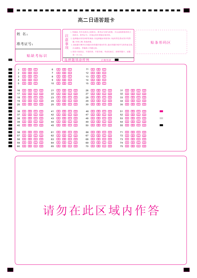 高二日语答题卡