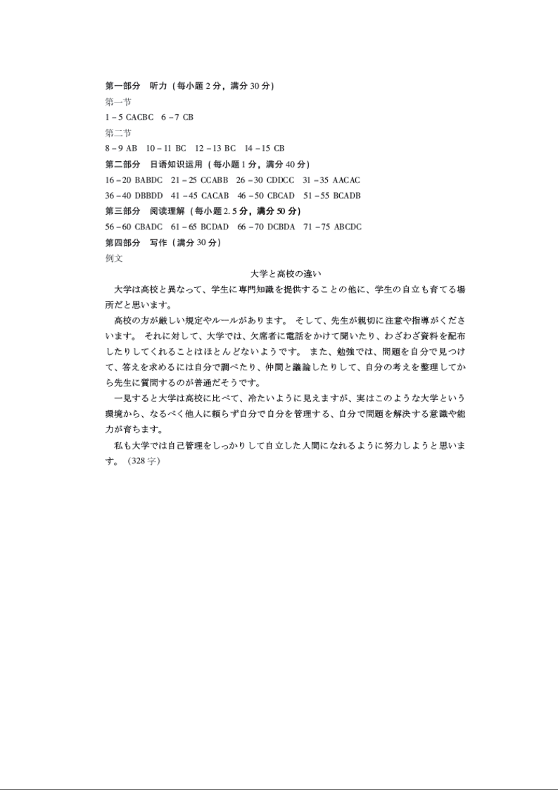 肇庆市2024届高三第二次教学质量检测日语【答案】