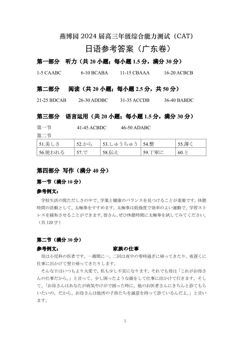 广东燕博园联考-日语答案