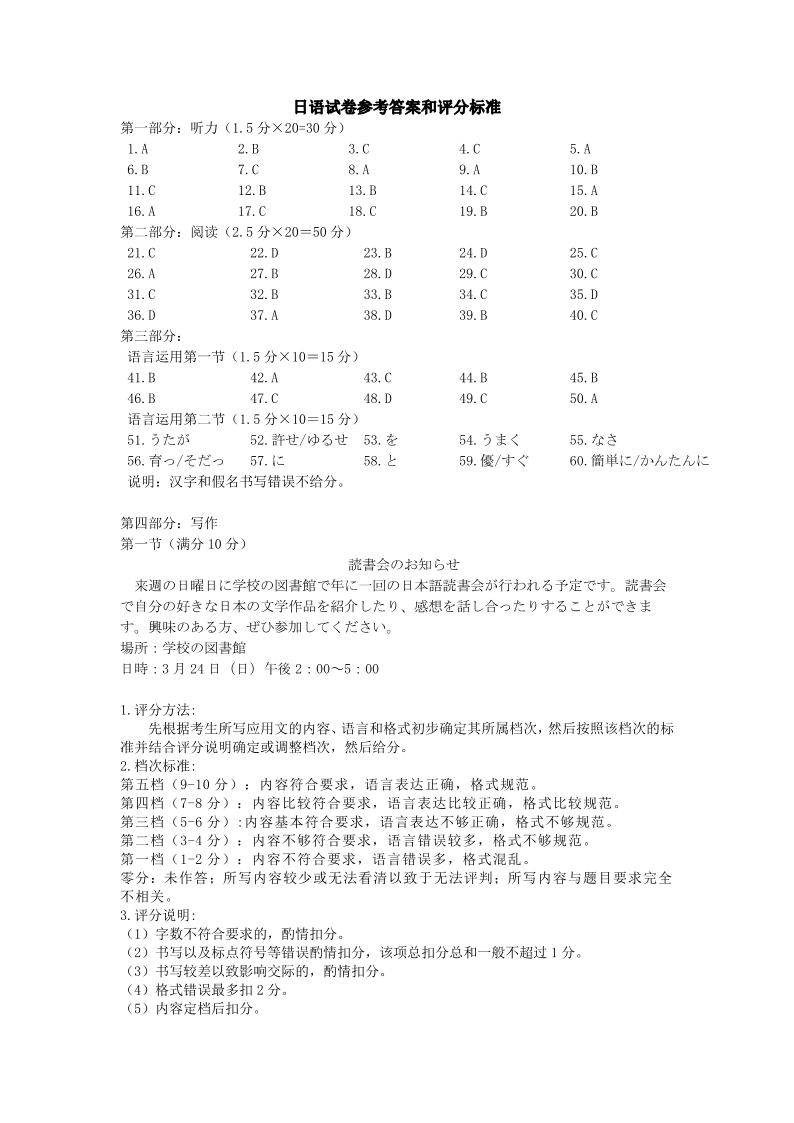 湖北省七市州2024届高三下学期3月联合统一调研测试+日语答案