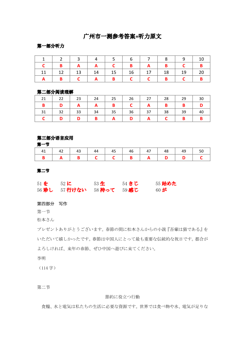 2024届高三年级教学质量监测日语+参考答案(1)