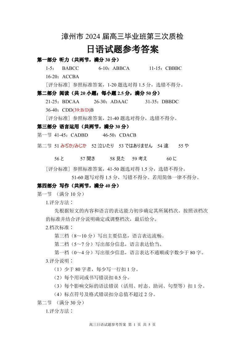漳州市2024届高三毕业班第三次质检答案及录音原文