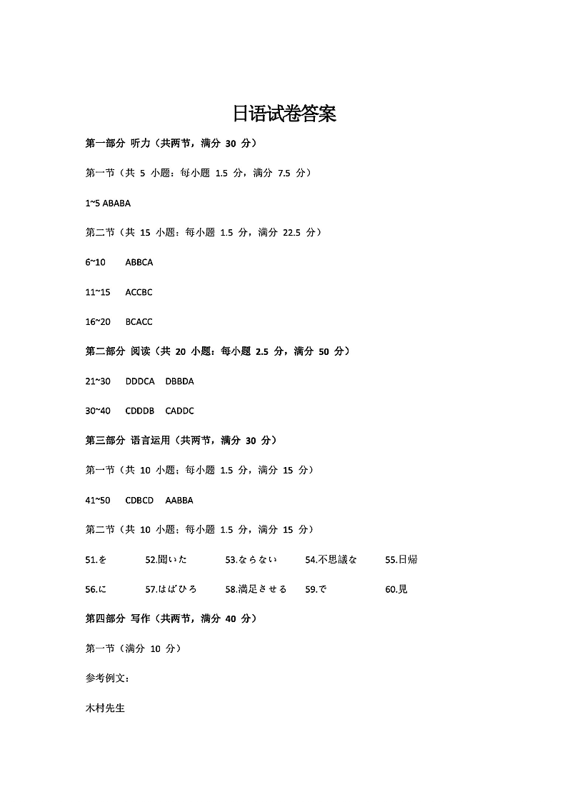 2024届江苏省徐州市联盟校毕业班高三下学期4月调研考试日语试题试卷答案