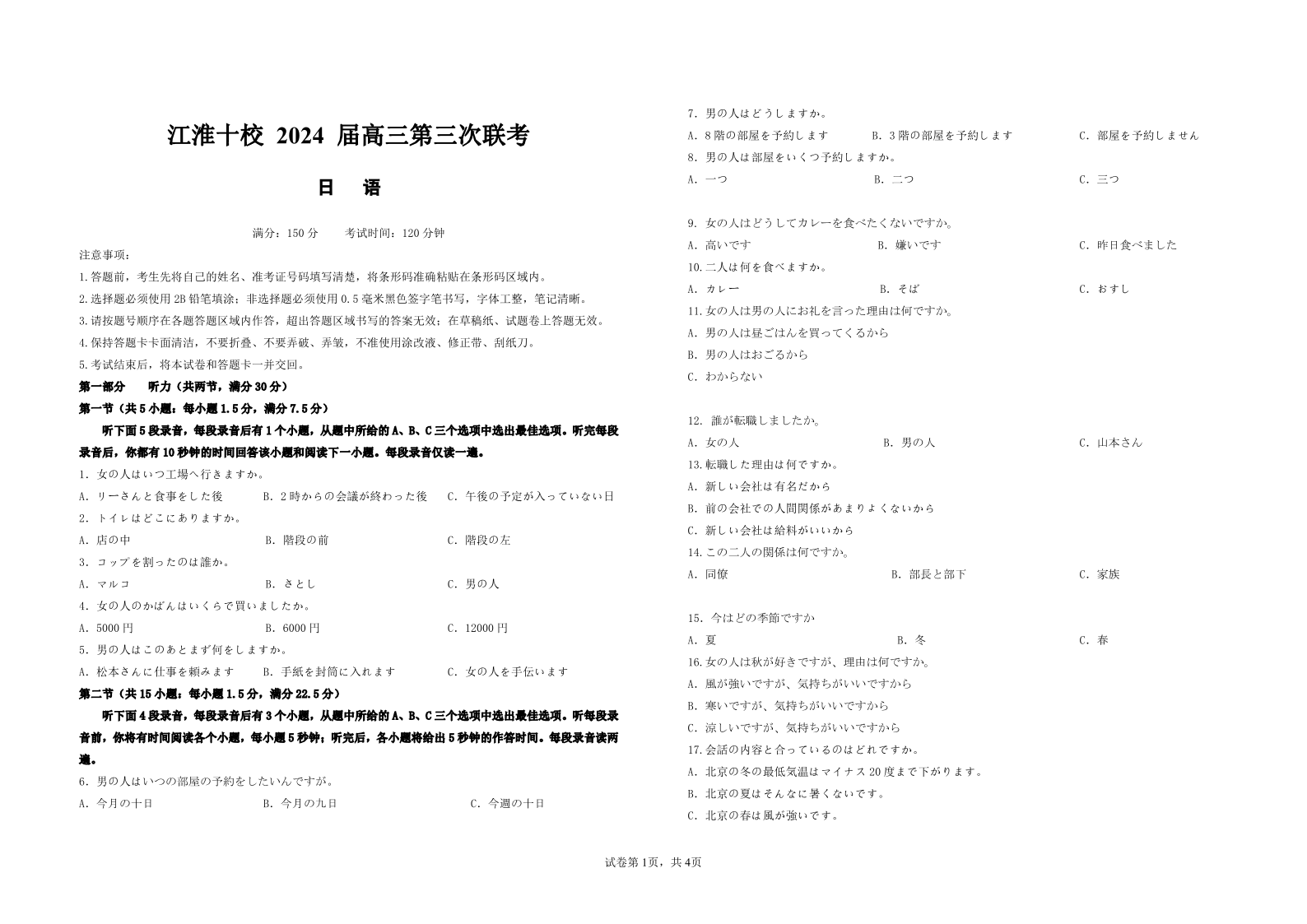 江淮十校-日语试题