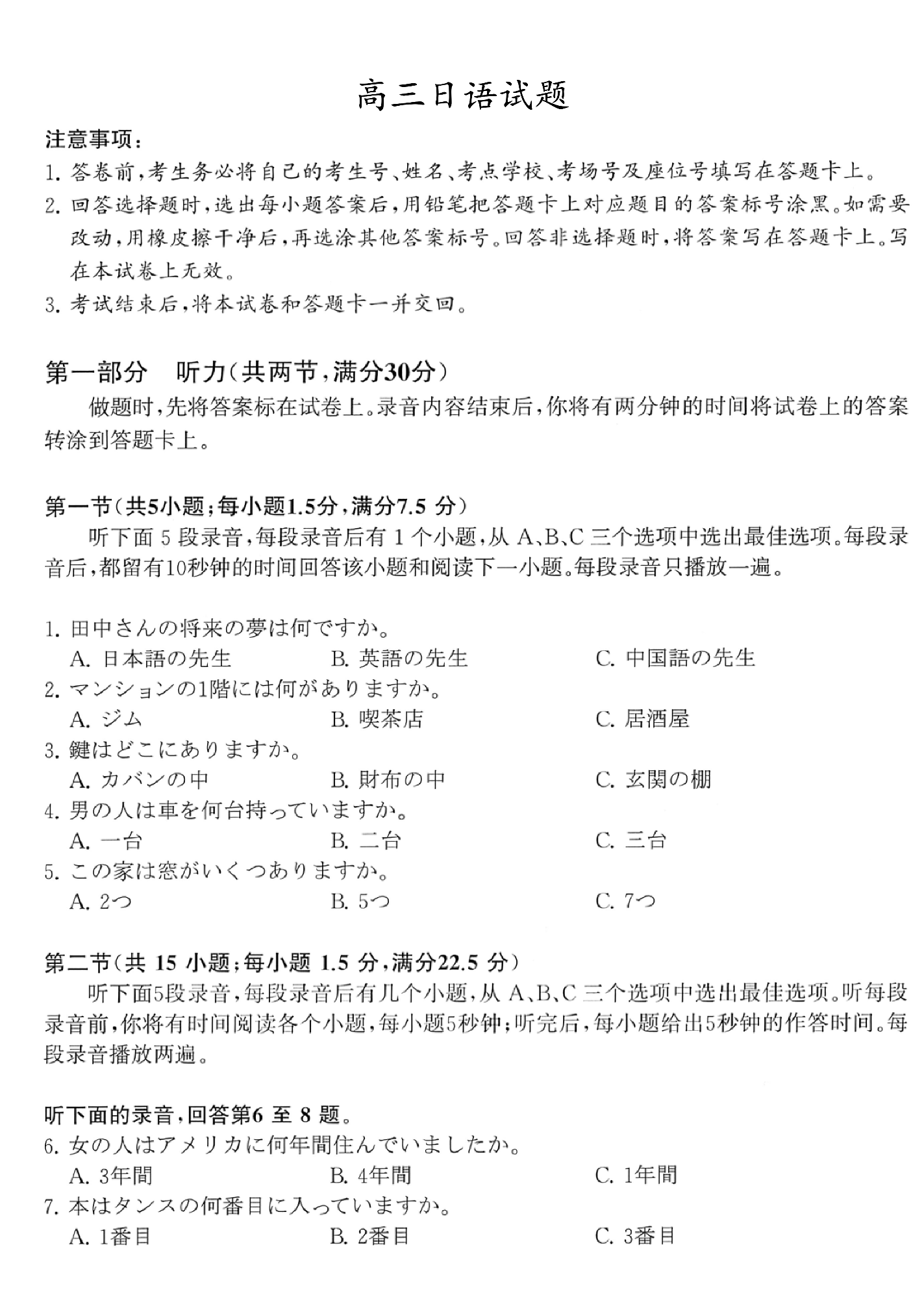 高三日语试题卷