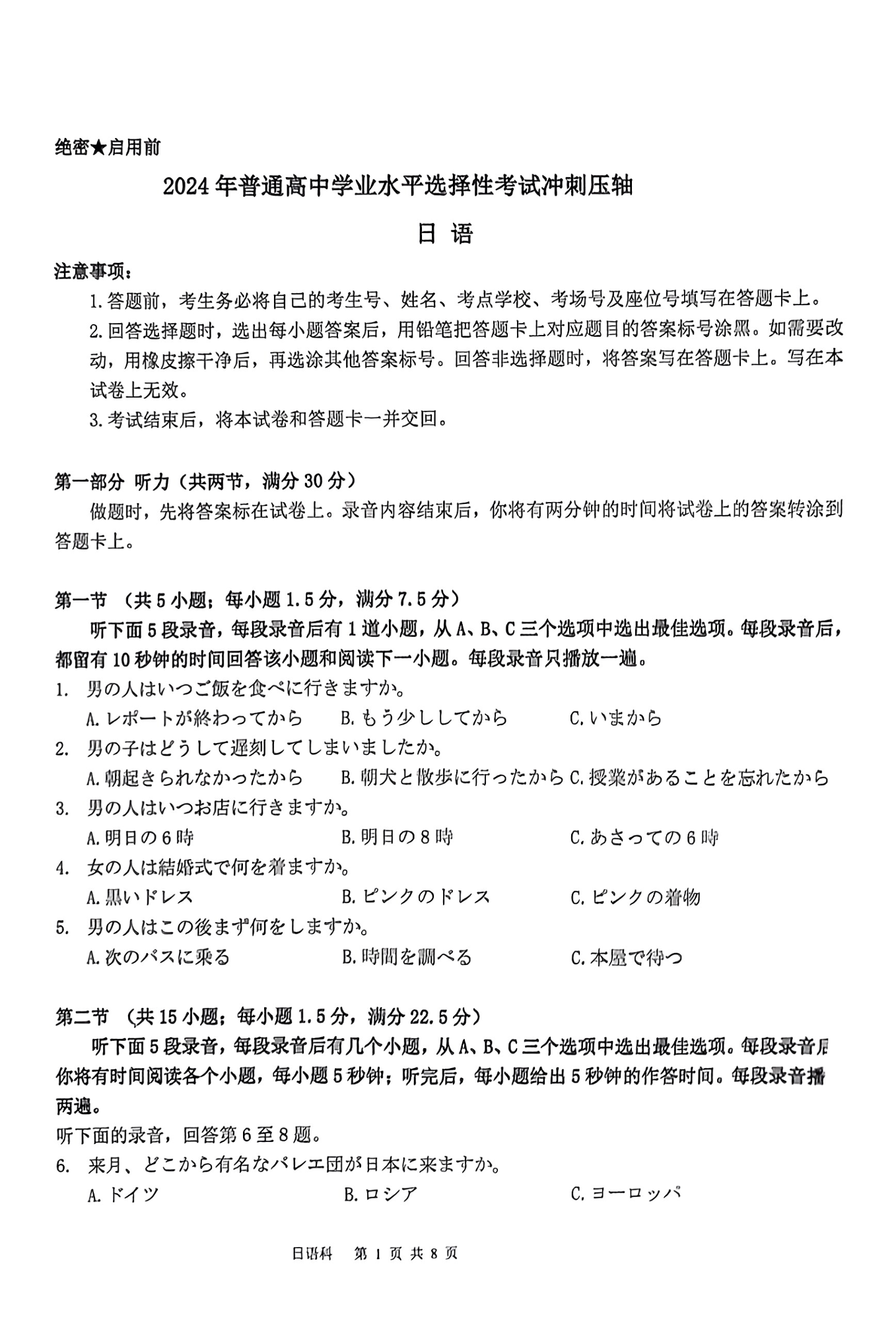 湖南联考-日语试题卷