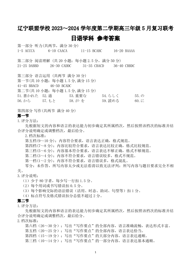 参考答案-辽宁联盟学校2023-2024学年高三下学期5月复习联考