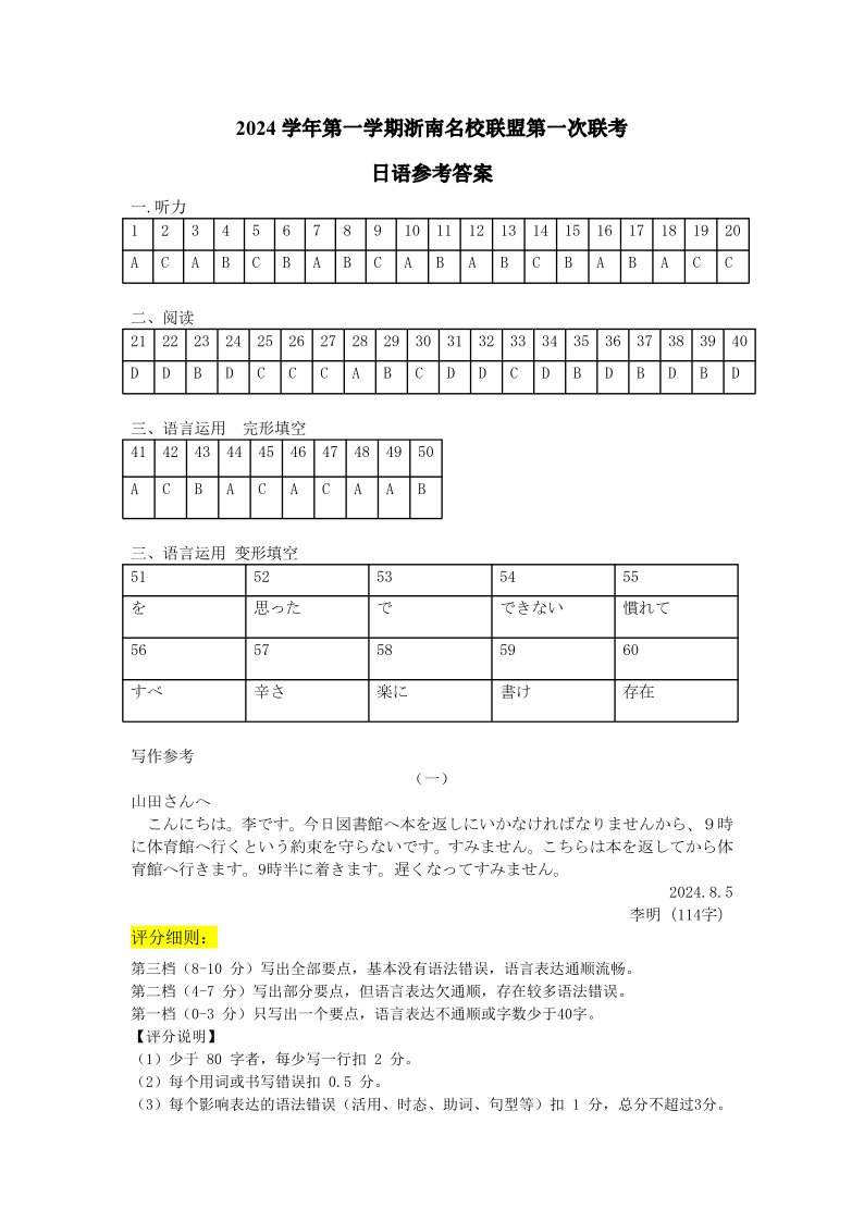 高三日语答案及听力原文