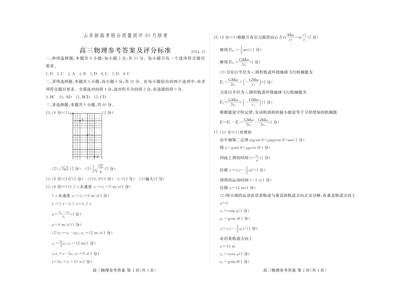 山东新高考联合质量测评高三10月联考试题+物理答案