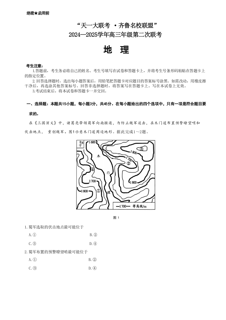 山东省齐鲁名校2024-2025学年高三年级第二次联考+地理