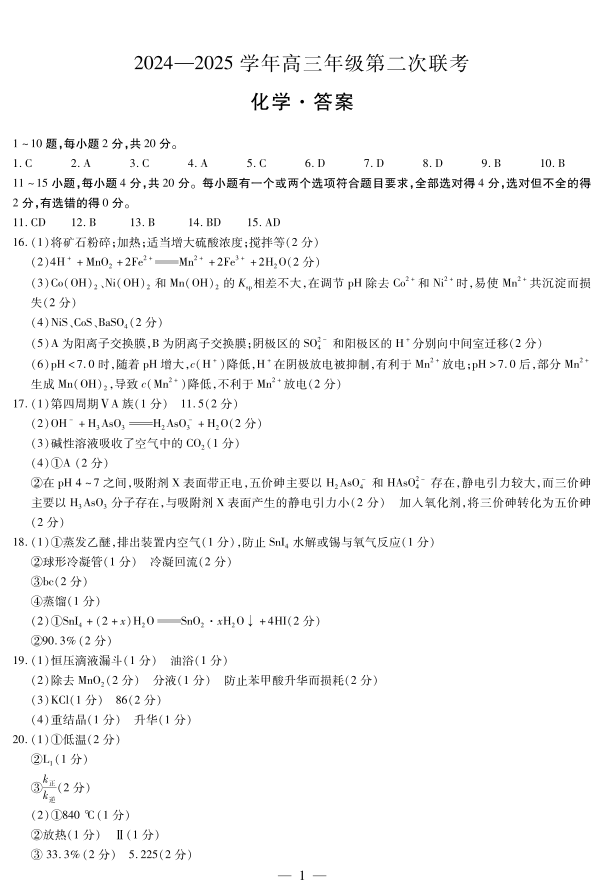 山东省齐鲁名校2024-2025学年高三年级第二次联考+化学答案