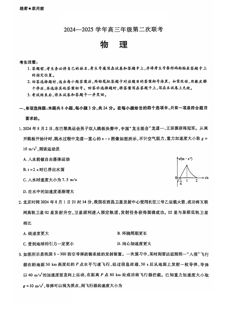 山东省齐鲁名校2024-2025学年高三年级第二次联考+物理
