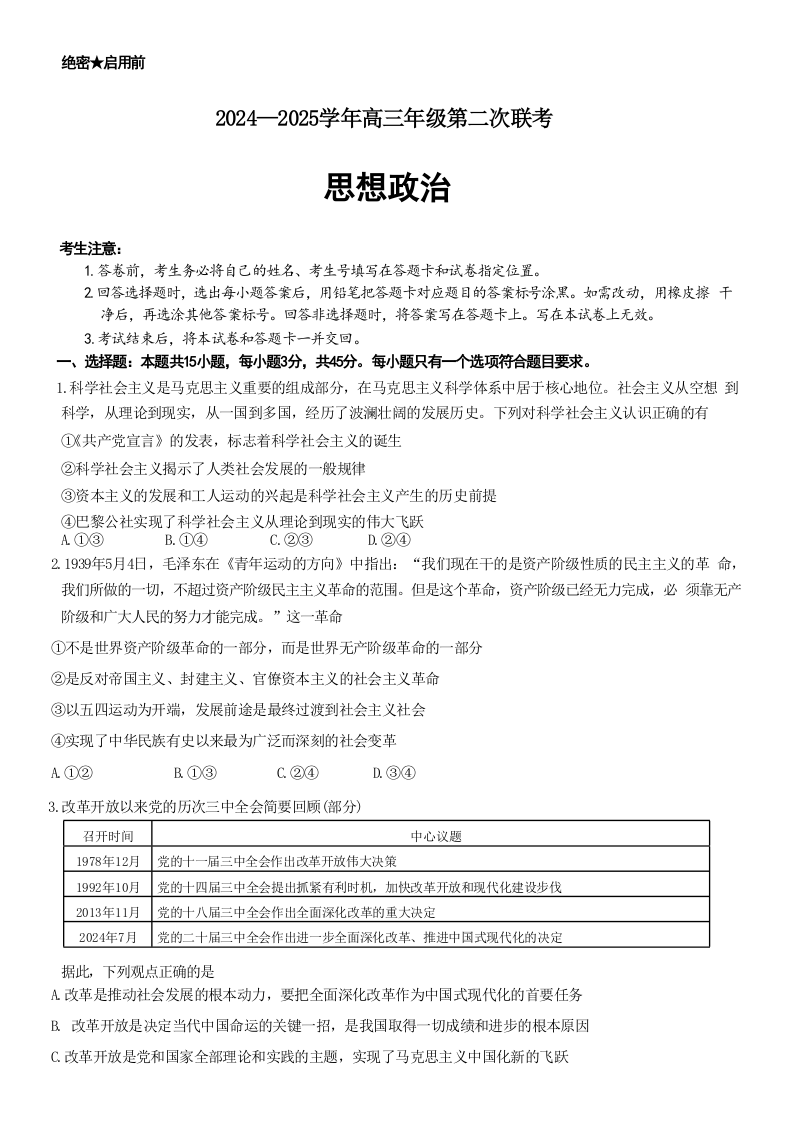 山东省齐鲁名校2024-2025学年高三年级第二次联考+政治