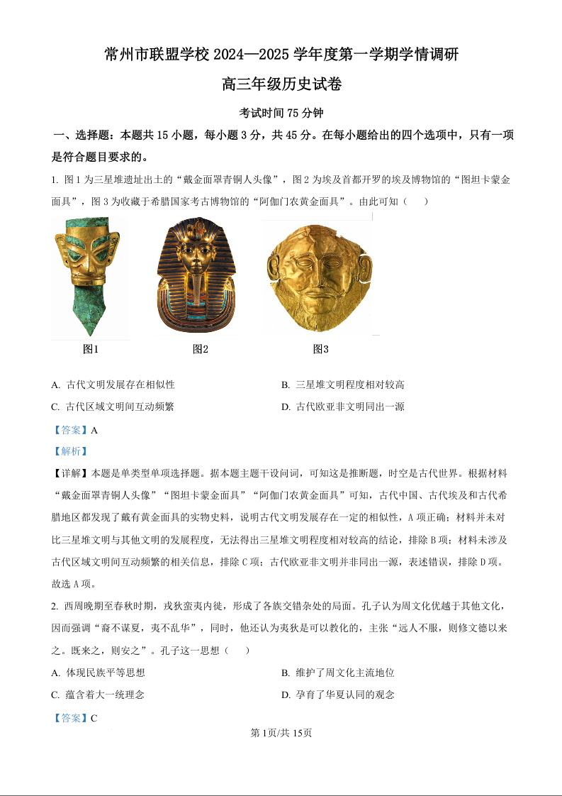江苏省常州市联盟学校2025届高三上学期10月月考+历史答案