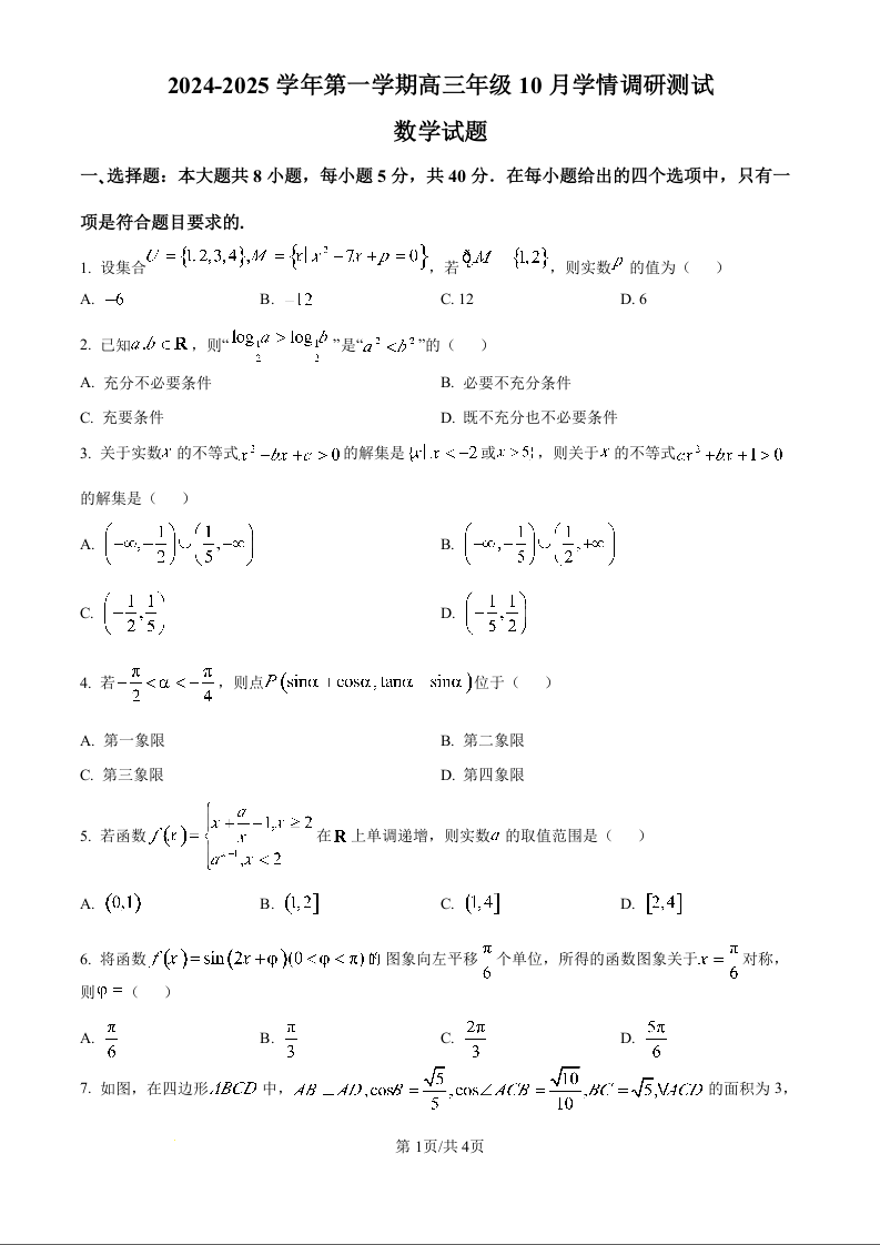 江苏省高邮市2025届高三上学期10月学情调研测试+数学
