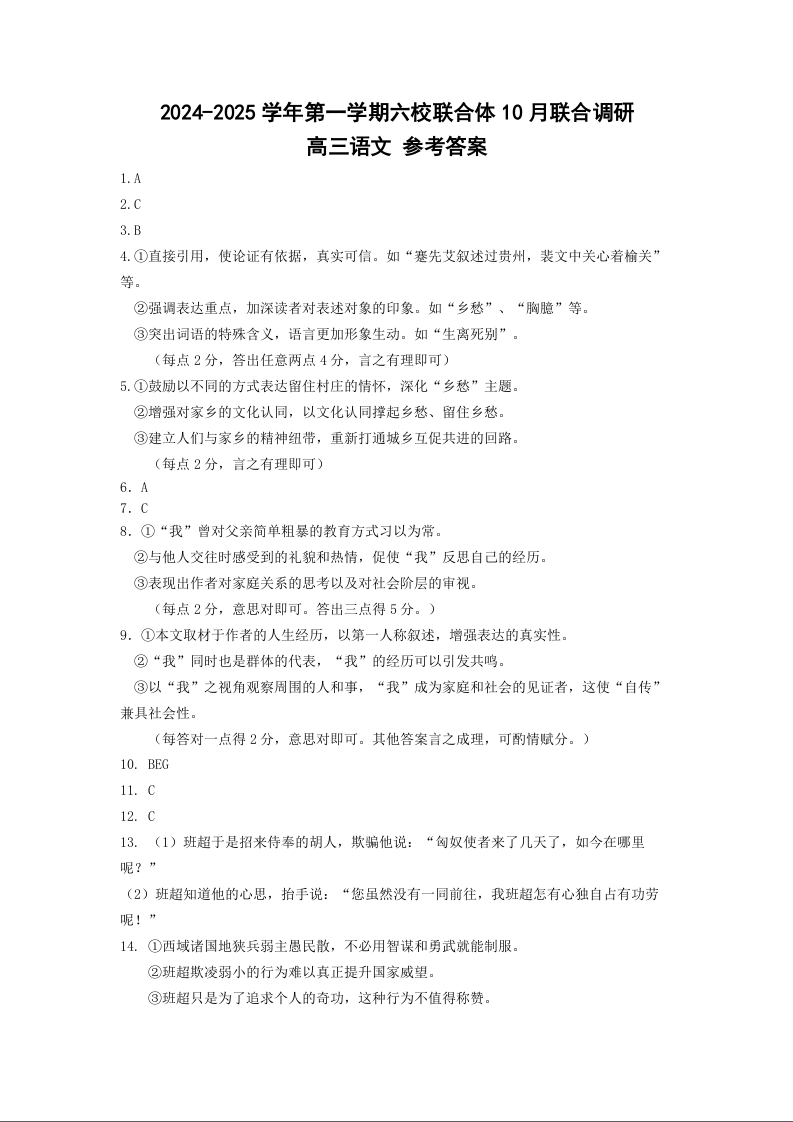 2024-2025学年第一学期六校联合体10月联合调研+语文答案