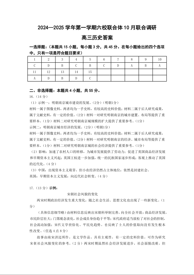 2024-2025学年第一学期六校联合体10月联合调研+历史答案