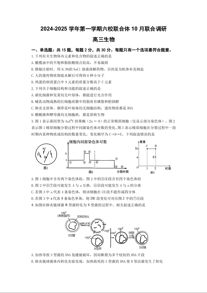 2024-2025学年第一学期六校联合体10月联合调研+生物