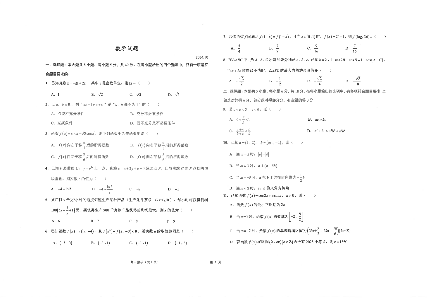 江苏省海安高级中学2025届高三上学期10月月考+数学