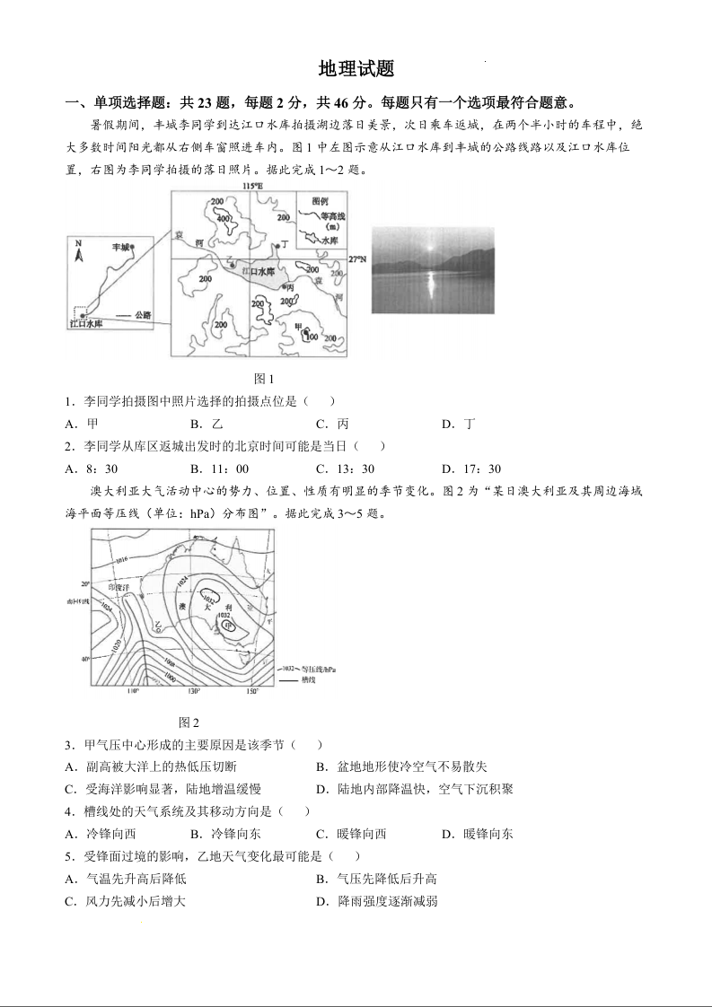 江苏省海安高级中学2025届高三上学期10月月考+地理