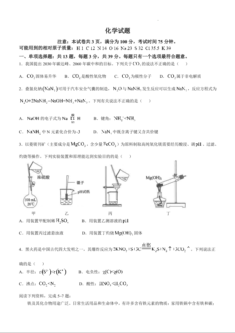 江苏省海安高级中学2025届高三上学期10月月考+化学
