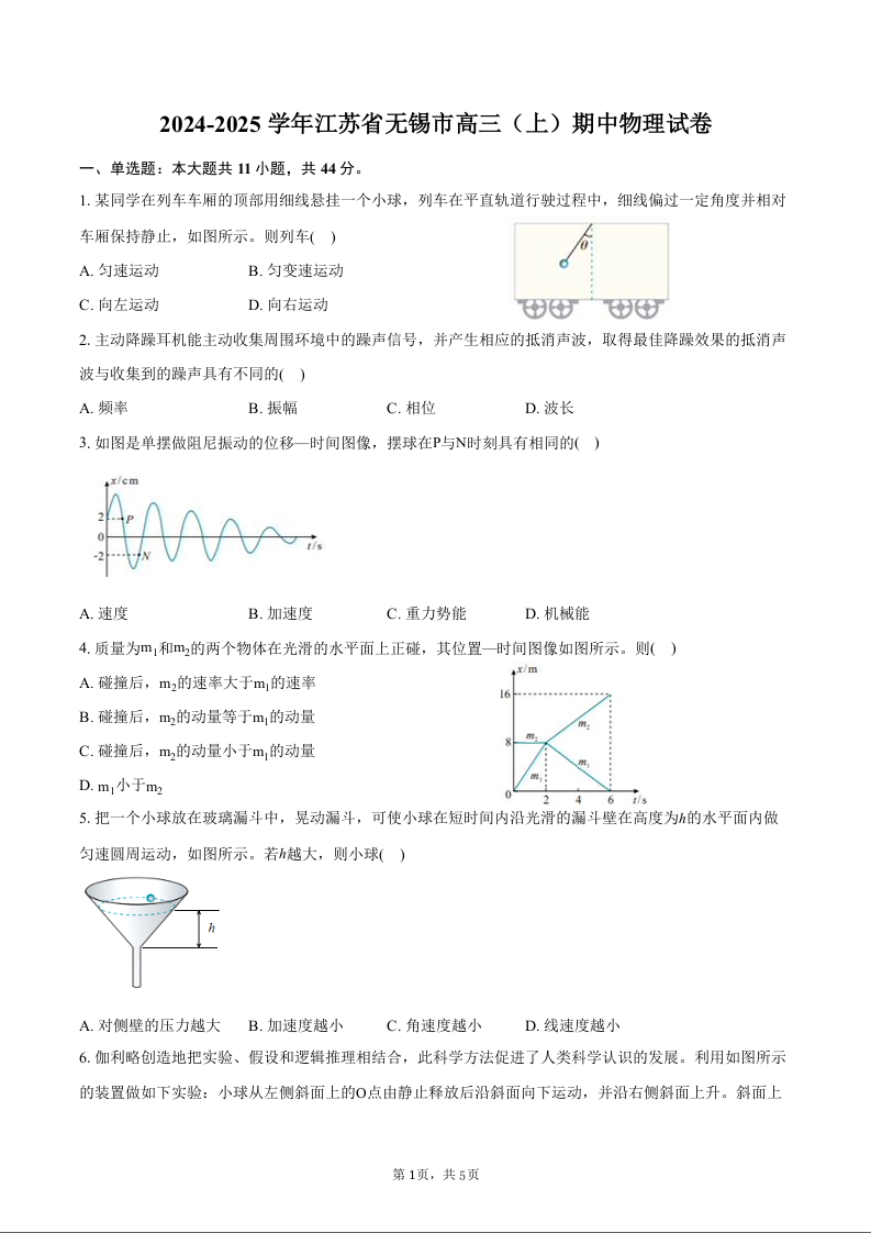 江苏省无锡市2025届高三11月期中教学质量调研测试+物理