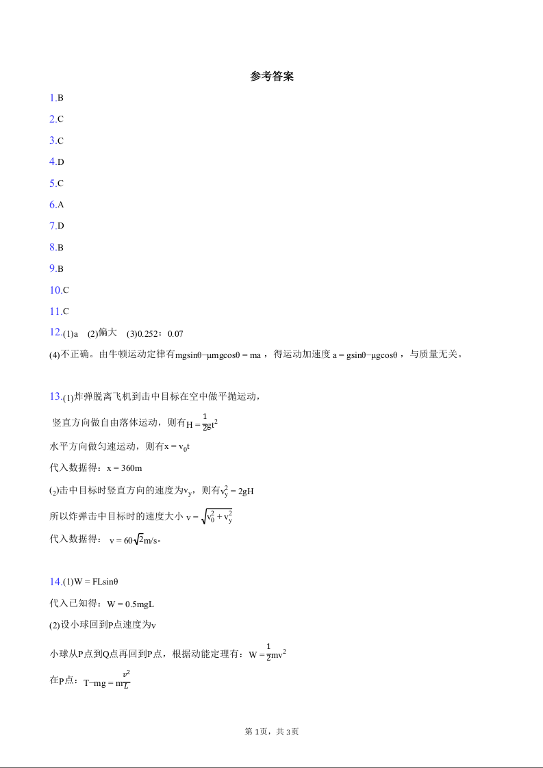 江苏省无锡市2025届高三11月期中教学质量调研测试+物理答案