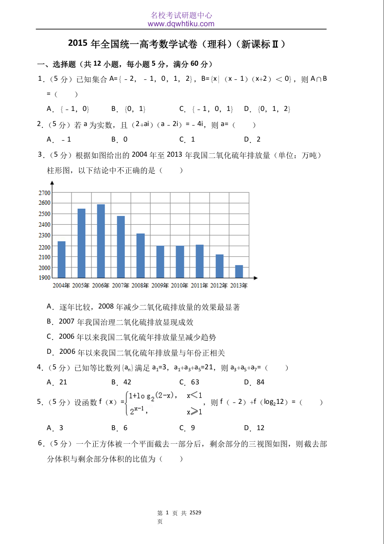 2015年全国统一高考数学试卷(理科)(新课标ⅱ)(含解析版)