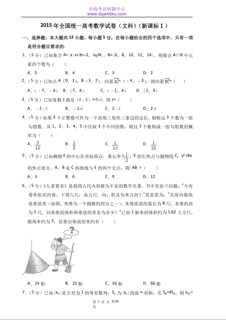2015年全国统一高考数学试卷(文科)(新课标ⅰ)(含解析版)