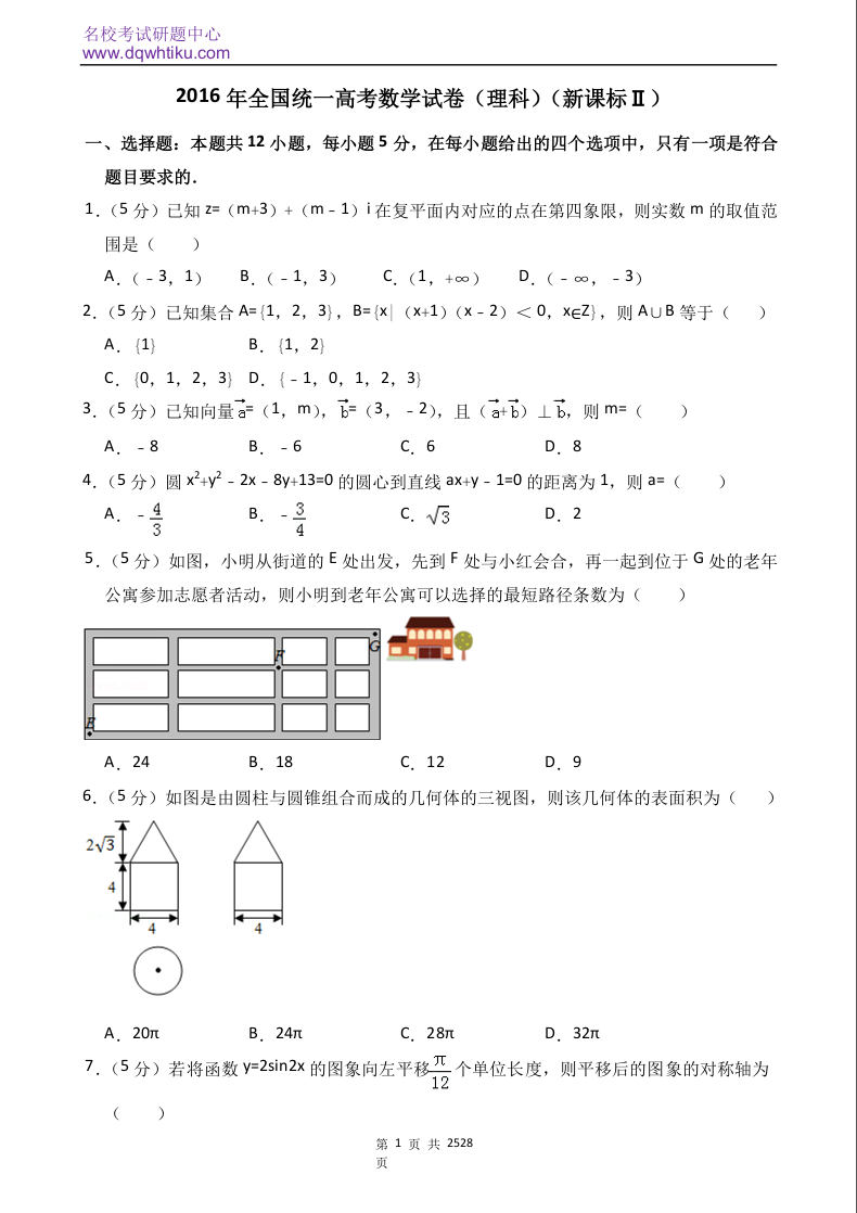 2016年全国统一高考数学试卷(理科)(新课标ⅱ)(含解析版)