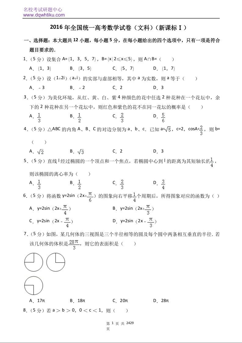 2016年全国统一高考数学试卷(文科)(新课标ⅰ)(含解析版)