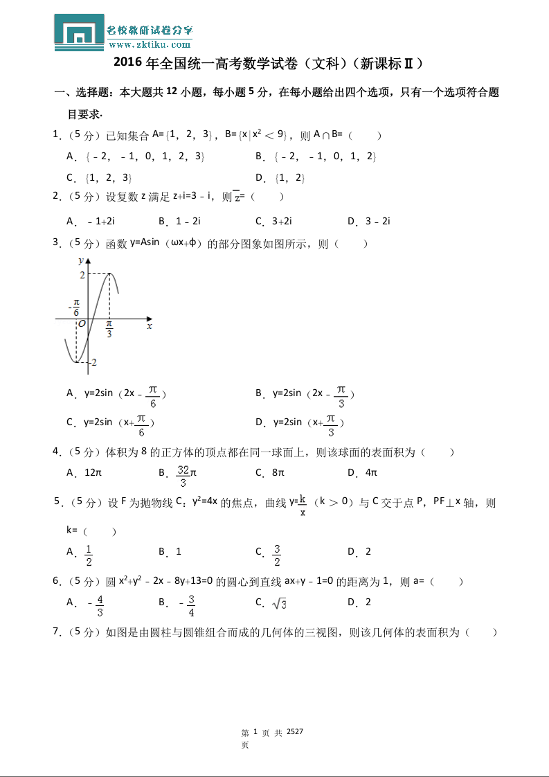 2016年全国统一高考数学试卷(文科)(新课标ⅱ)(含解析版)