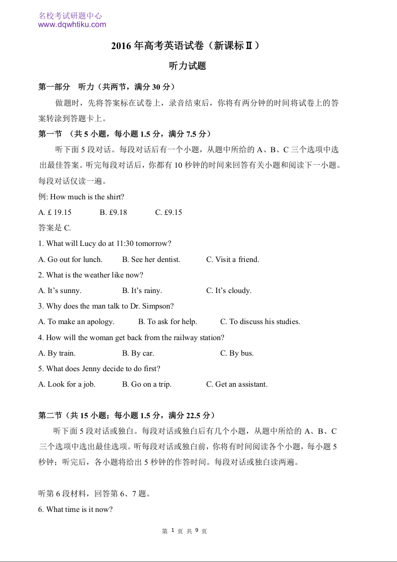 2016年高考英语试卷(新课标ⅲ)听力文档